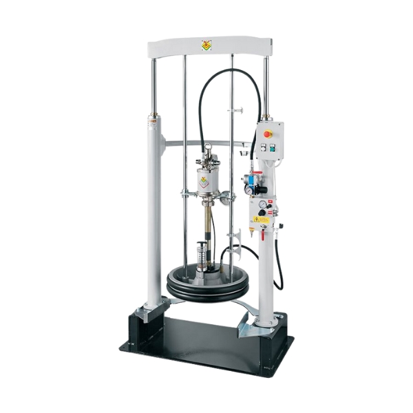 Twin Ram Hoist P/N 11/85 with Pump P/N 115FSP/751 and Follower Plate P/N 11/64 For 180 - 220 Kg Drums with Accomodation For Pallet. Flow Rate 4.4kg/min and Ratio 75:1