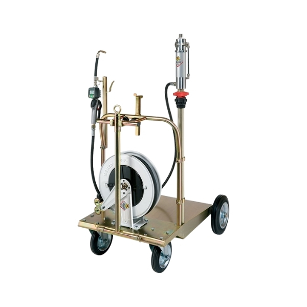 Mobile Oil Dispenser for Drums 180-220 Kg with Pump Ratio of 5:1 and Flow Rate of 18 L/Min, Hose Reel of Length 10 Meters and Oil Gun P/N 37758
