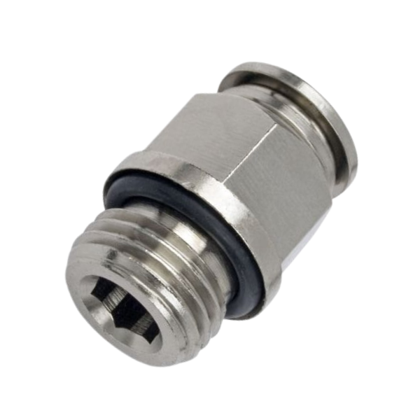 Stud Male G-Thread with O-Ring - Metal Push-in Fitting - 4mm Tube To 1/8" G-Male Thread - Nickel Plated Brass