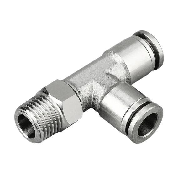 IPDT06-03 - Tee Piece Male Run - Metal Push-in Fitting - 6mm Tube To 3/8" Male Thread with Tube Tee