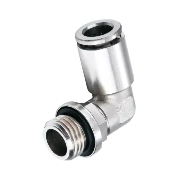 Elbow Male with O-Ring - Metal Push-in Fitting - 10mm Tube To 1/2" G-Male Thread - Nickel Plated Brass